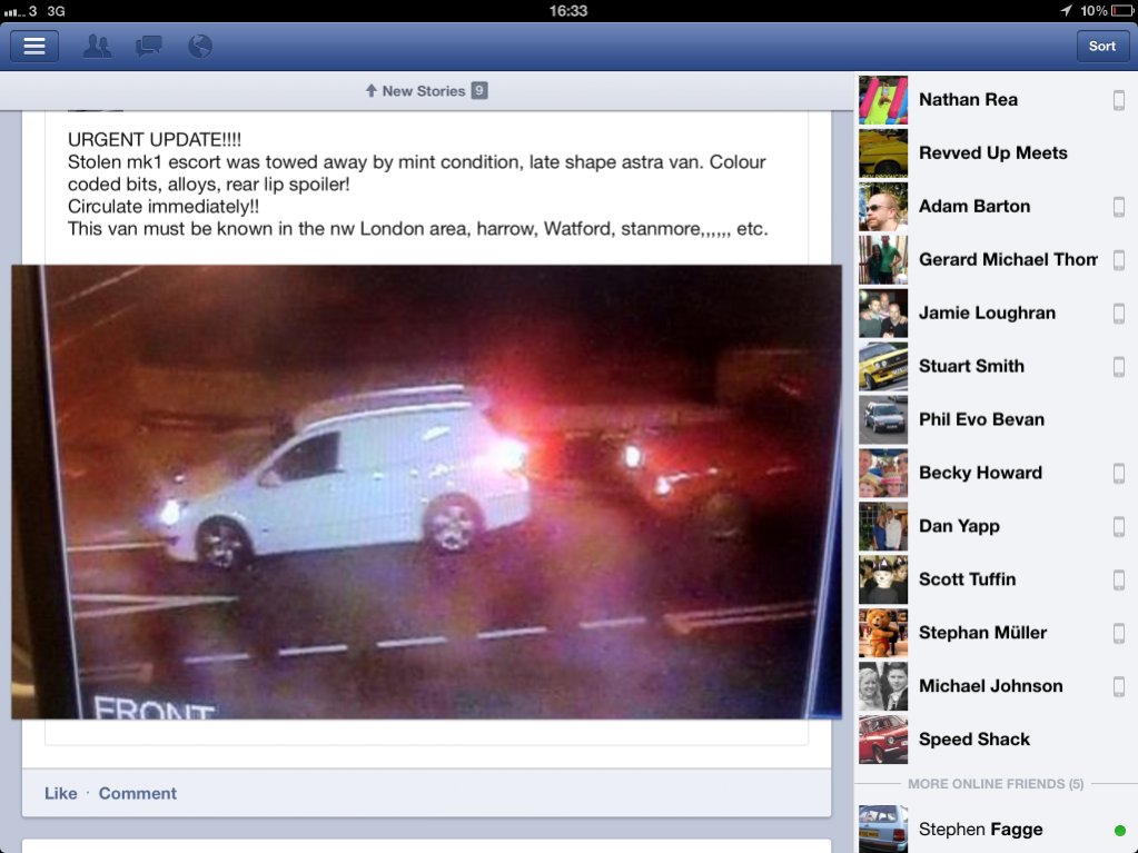 • STOLEN: Mk1 escort yb'd taken from South Ruislip night of 5/9/12 YBH 811J
