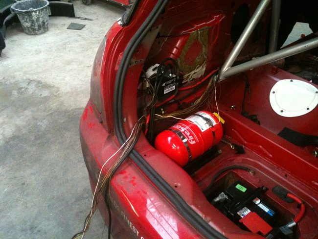 To get the weight down, Perspex has been installed all round, the complete dash removed, the extinguisher repositioned for better weight distribution, a smaller battery installed, the existing wiring loom removed and a new one installed.