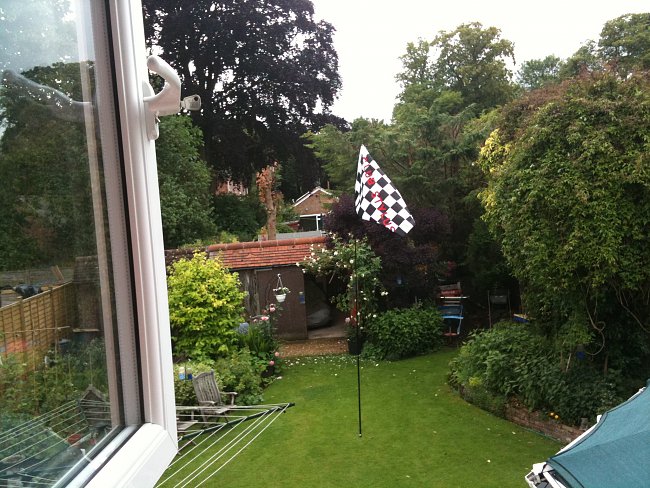 So a stand for 10 cars at present for our club as opposed to the manufacturer in the name of --- CLUB STYLUS . I bought an extendable flagpole for £5-99p and a flag for the same then a very kind lady in the village stitched some red letters onto it for me .