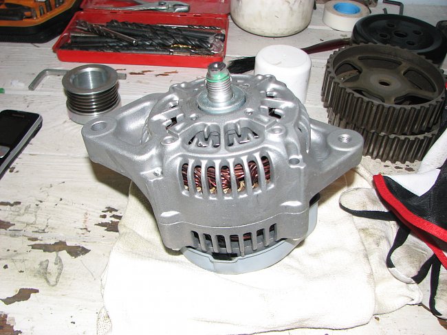 And there you go 3kg 45amp "Motorsport" alternator instead of 5 kg 120 amp alternator.